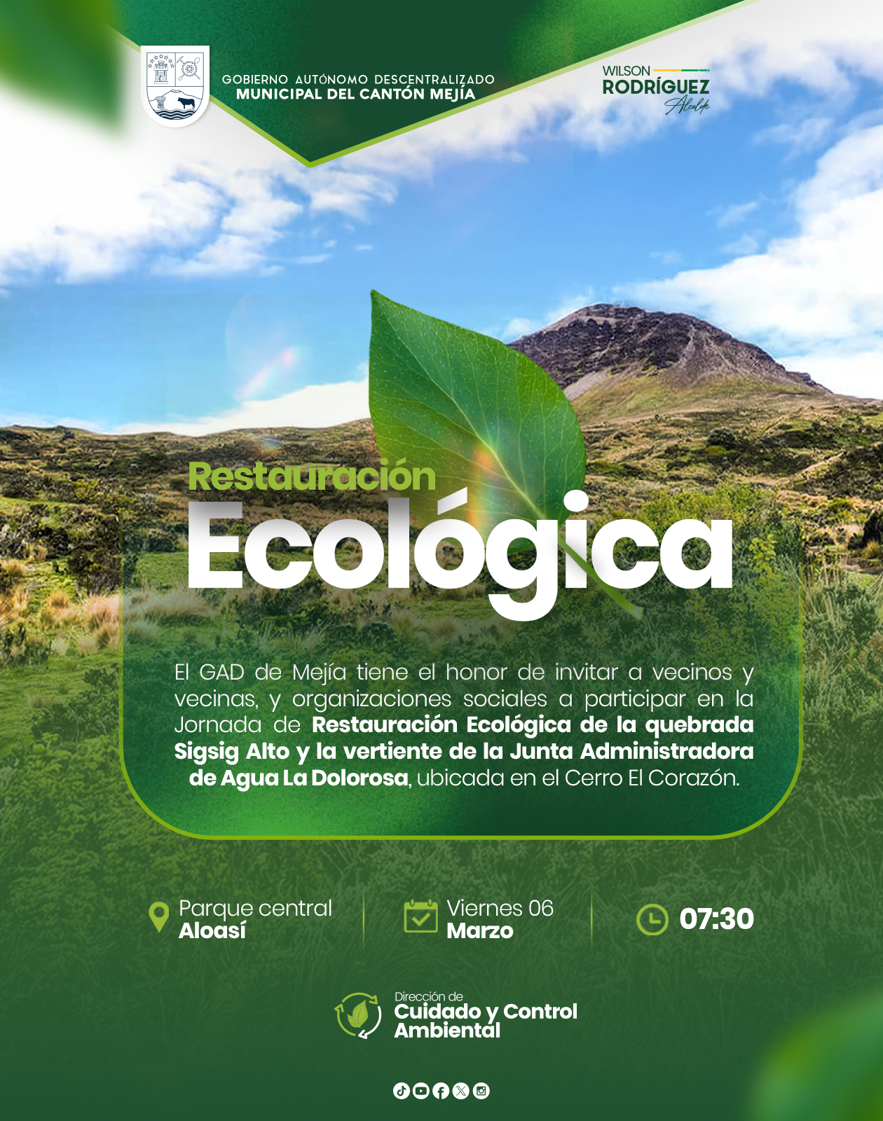 Tierra prodigiosa y fecunda, dueña de un extenso valle rodeado de majestuosas montañas que acunan en sus brazos a Machachi, Alóag, Aloasí, Cutuglagua, El Chaupi, Tambillo y Uyumbicho; y de la exuberante flora y fauna tropical de Manuel Cornejo Astorga. Esto es Mejía Un destino único con una amplia oferta turística de calidad. Nuestra gente amable y hospitalaria te espera para que disfrutes en familia o con amigos.